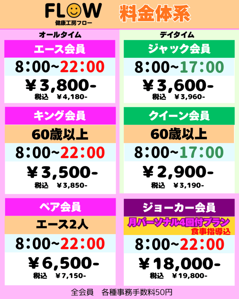 | 体力アップコース 疲れやすい方にオススメ | 1回30分 | ¥3,300-(税込) |